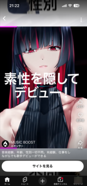 通常の動画とは違い、YouTubeショートでは動画内に直接広告が表示されるわけではありません。