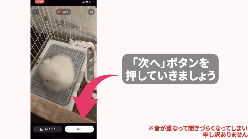 投稿する動画をタップしたら、右下に出てくる「次へ」を押します。