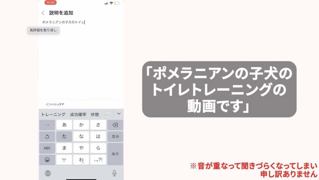 - 音声設定:動画にはBGMなしで撮影・編集し、アップロード時にYouTube内でBGM追加